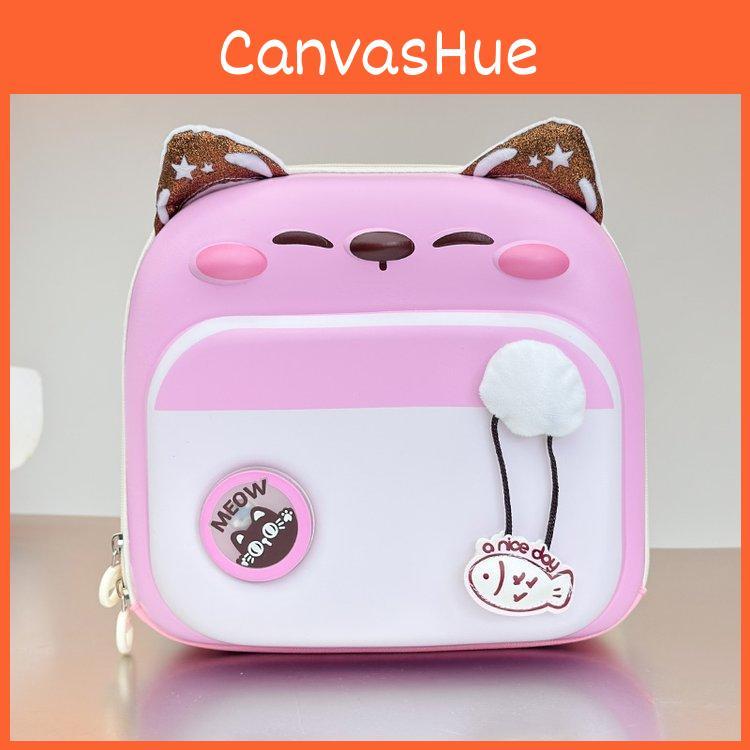 Cute Color Blocked Cartoon Cat Pattern Children Hard Shell Square Backpack