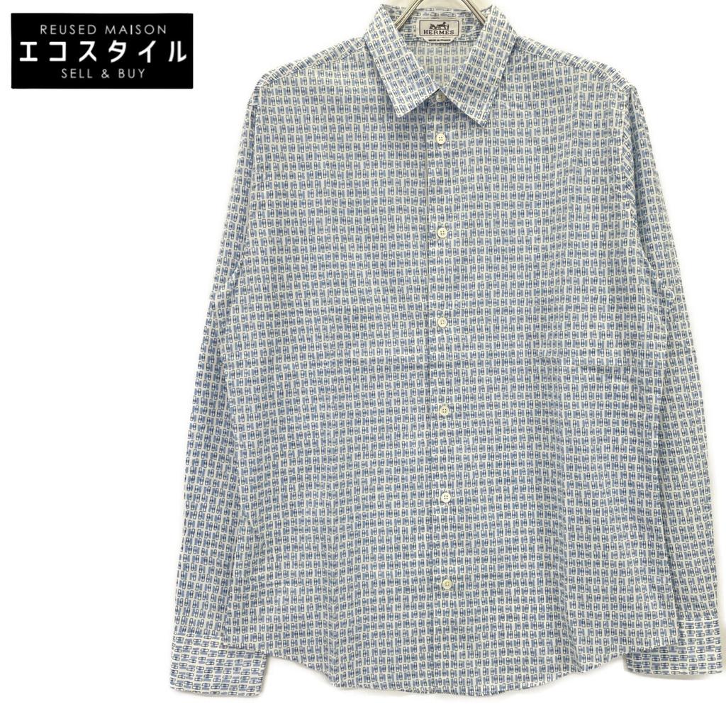 type: Blue x White Cotton H Motif Serie Button Long Sleeve Button Shirt