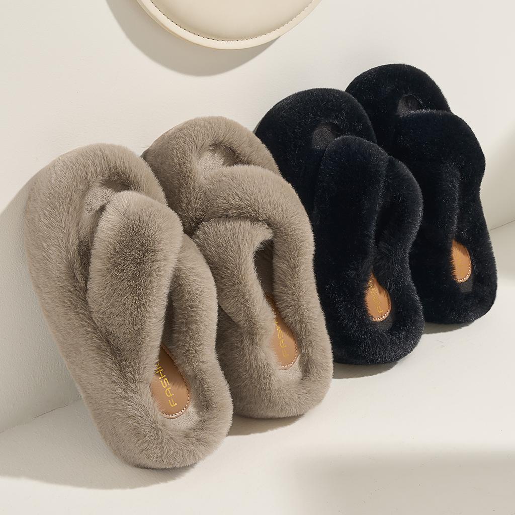 Mode Kreuzhaarige Hausschuhe Herbst und Winter tragen Muffin dicker Boden erhöhen 2025 neue kleine Baumwollmop