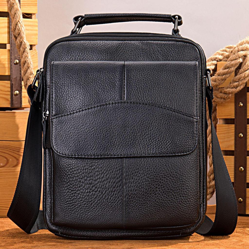 Herren Umhängetasche aus echtem Leder - Große Kapazität, lässiges Klappendesign für den Geschäftsverkehr