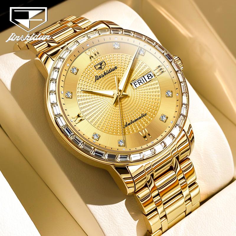 JINSHIDUN Marke Business Diamant Automatische Mechanische Uhr herren Business Wasserdichte herren Uhr herren Uhr