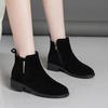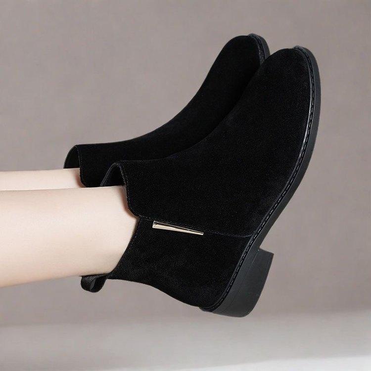 Herbst und Winter neue Samt mittelhohe Absatz Martin Stiefel dicker Absatz mattes Leder dünne Damen kurze Baumwollstiefel
