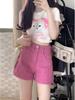 High-Waisted Pink Denim Shorts for Women: Plus Size, Loose-Fit, A-Line, Wide-Leg, Trendy Summer Style