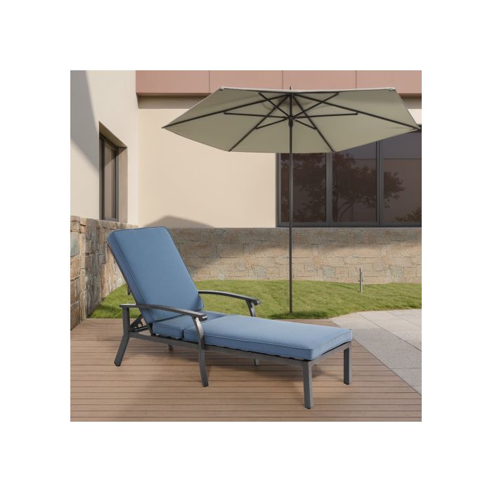 Chaise longue de jardin avec coussin en coton, chaise longue de piscine réglable en aluminium antirouille, coussin bleu (1 pièce)