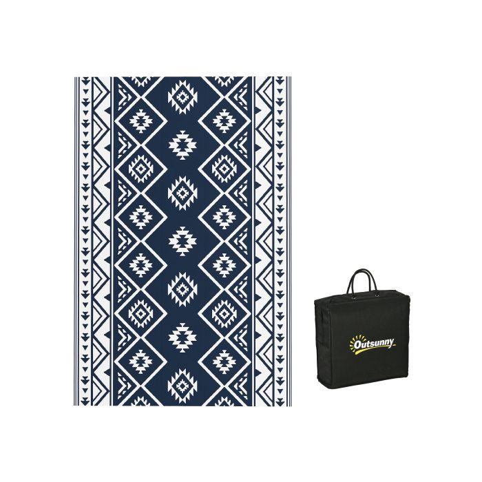 Tapis d'extérieur réversible Outsunny 182x274cm, imperméable, synthétique, bleu foncé et blanc