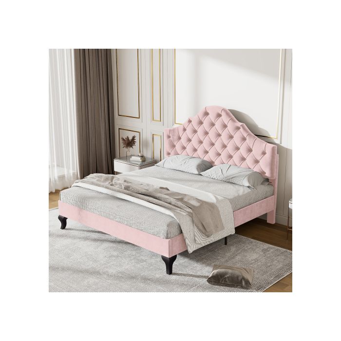 Gepolstertes Bett - MUVOE - 140x200 cm - Verstellbares Kopfteil - Rosa Samt - 2-Sitzer