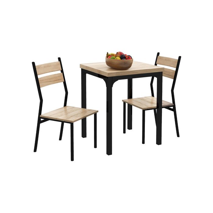Küchentisch - MUVOE - 3-teiliges Set - Naturholz und Schwarz - 4 Personen - Kompaktes Design