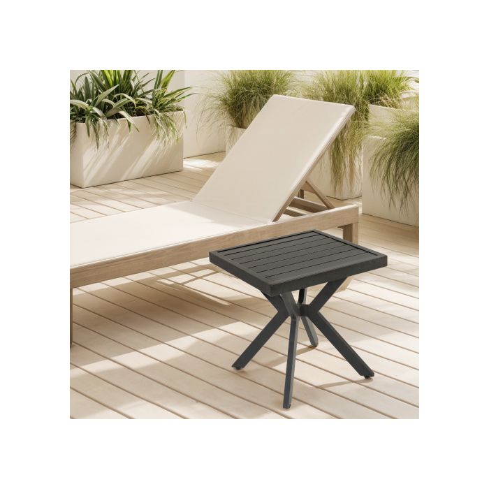 Table d'appoint carrée en aluminium, adaptée aux terrasses, jardins, bords de piscine et intérieurs, brun foncé