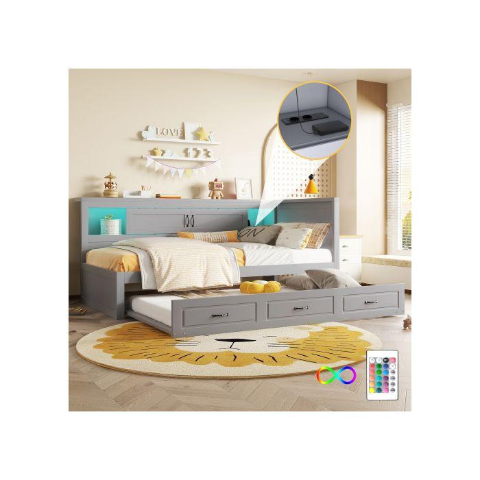 Canapé-lit - MUVOE - 90x200cm - Éclairage d'ambiance - Rangement intégré - Prise + USB