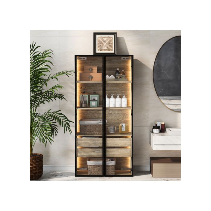 Armoire de salle de bains - MUVOE - Modèle moyen - Éclairage LED - 2 tiroirs - Verre dépoli