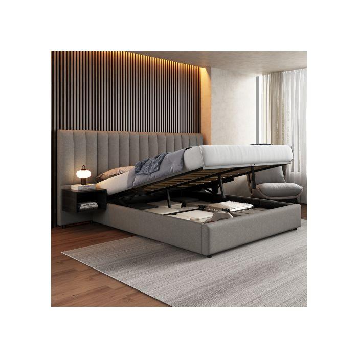 Gepolstertes Bett - MUVOE - 160 x 200 cm - Hydraulisch - 2 Nachttische - Integrierter Stauraum