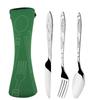 Mit einer Tragetasche ist dieses Besteckset bequem in einem Rucksack oder einer Handtasche zu tragen.