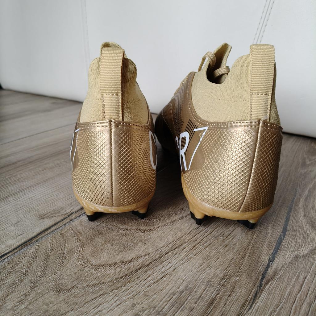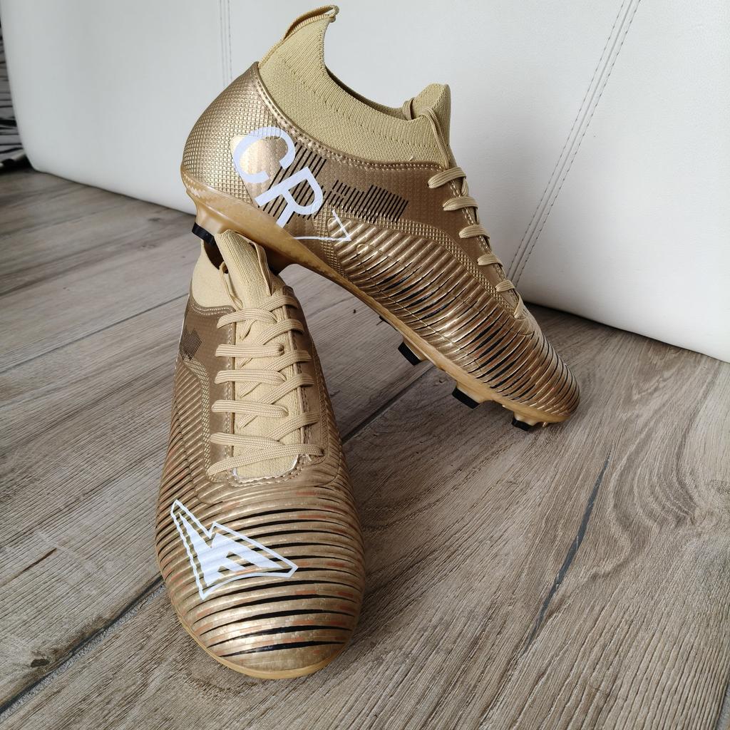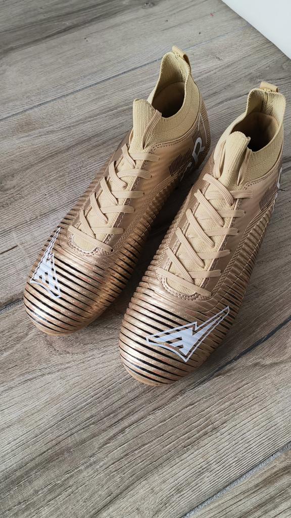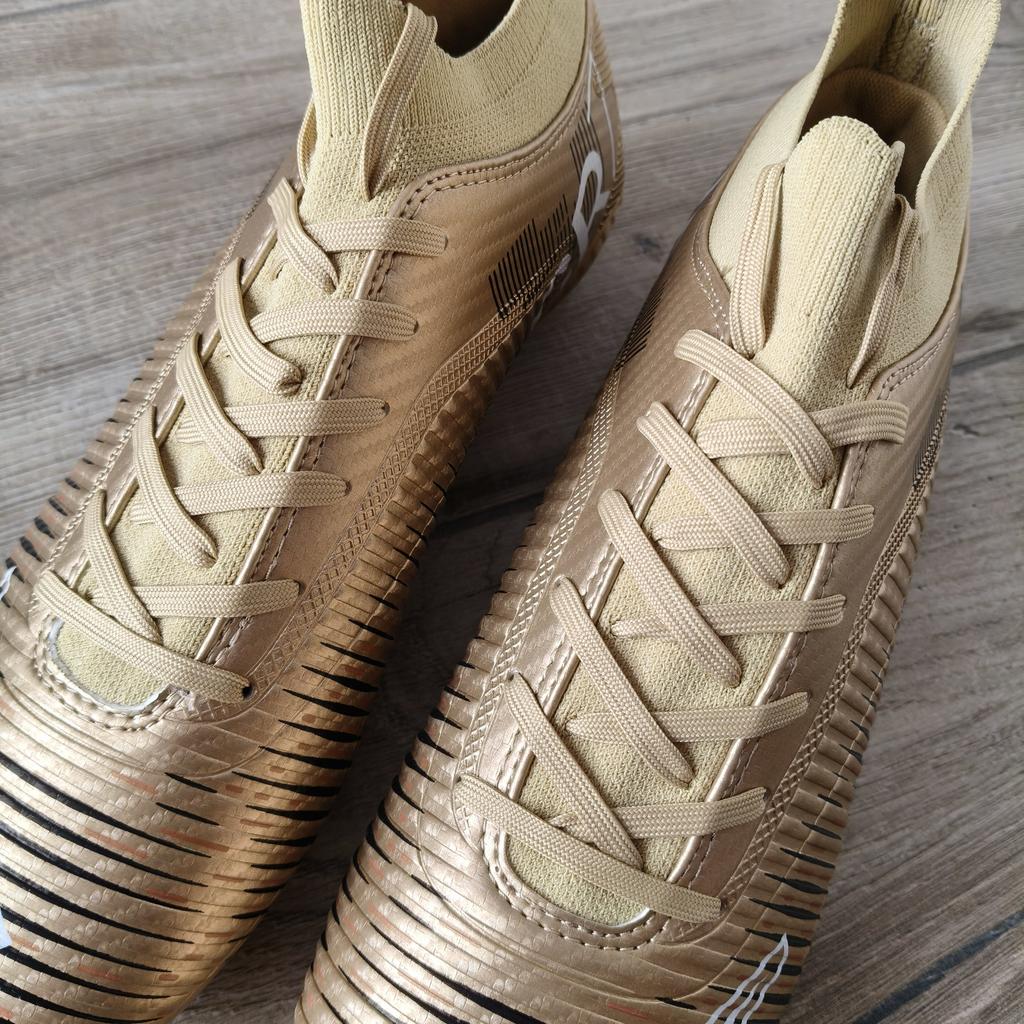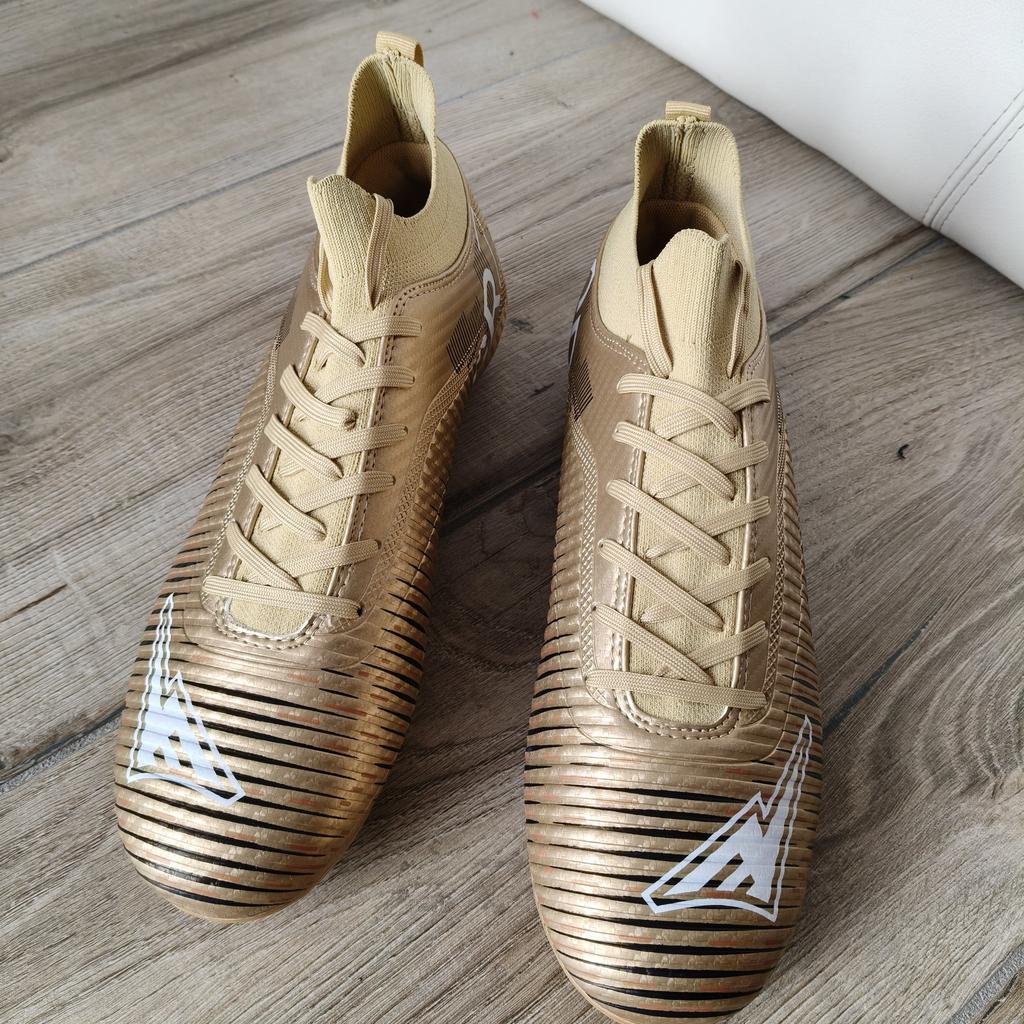 FUSSBALLSCHUHE Fußballschuhe erhältlich mit Stollen für Rasenplätze oder ohne Stollen für Kunstrasenplätze Saubere Nähte, keine Kleberflecken. Keine Mängel. Innen sind sie gepolstert, Sockenmodell. Erhältlich in den Größen 35 bis 45. 3 Farben verfügbar, mein Neffe hat Farbe Gold gewählt. Kam in Italien mit Sendungsverfolgung in 16 Tagen an. Kaufempfehlung 👍