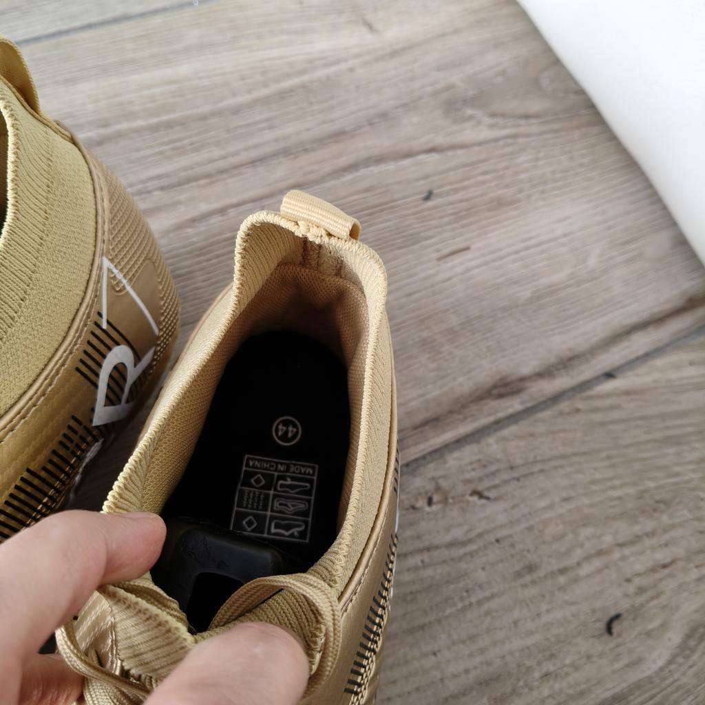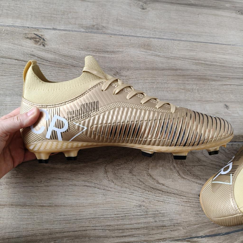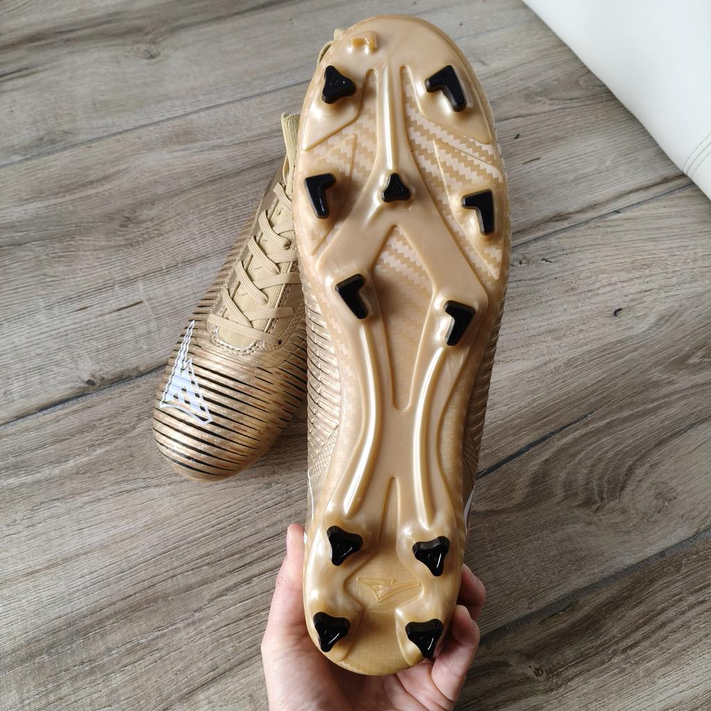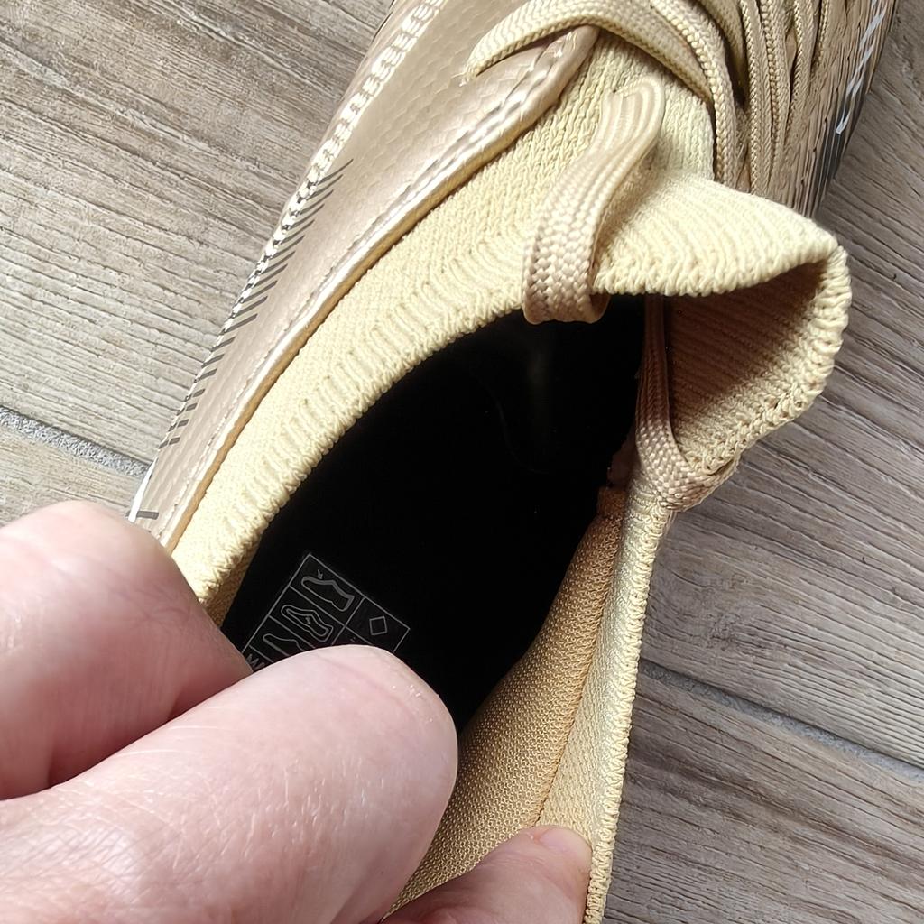 FUSSBALLSCHUHE Fußballschuhe erhältlich mit Stollen für Rasenplätze oder ohne Stollen für Kunstrasenplätze Saubere Nähte, keine Kleberflecken. Keine Mängel. Innen sind sie gepolstert, Sockenmodell. Erhältlich in den Größen 35 bis 45. 3 Farben verfügbar, mein Neffe hat Farbe Gold gewählt. Kam in Italien mit Sendungsverfolgung in 16 Tagen an. Kaufempfehlung 👍