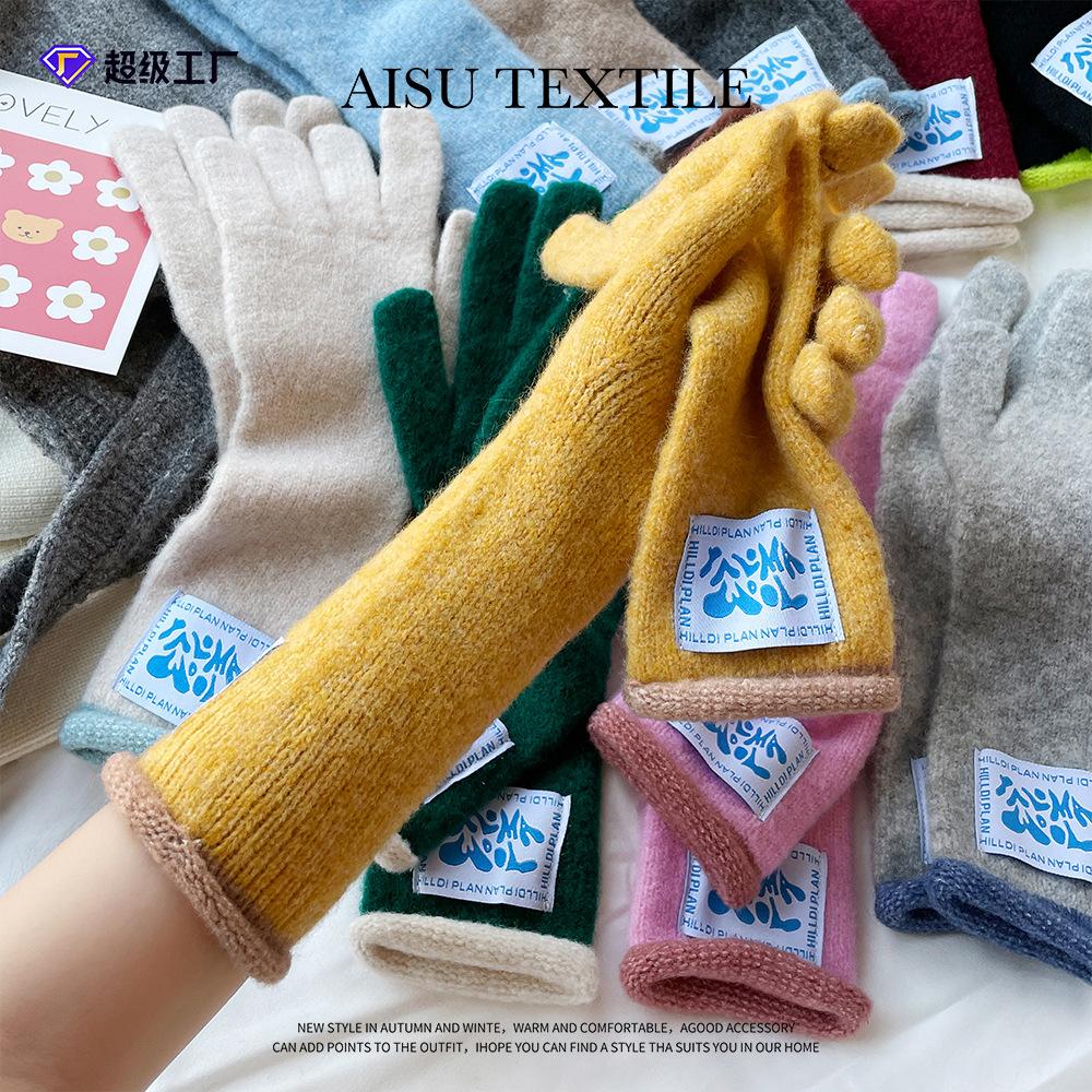 Style wool gloves knitted touch screen gloves women's autumn and winter warm macaron color relaxation gloves