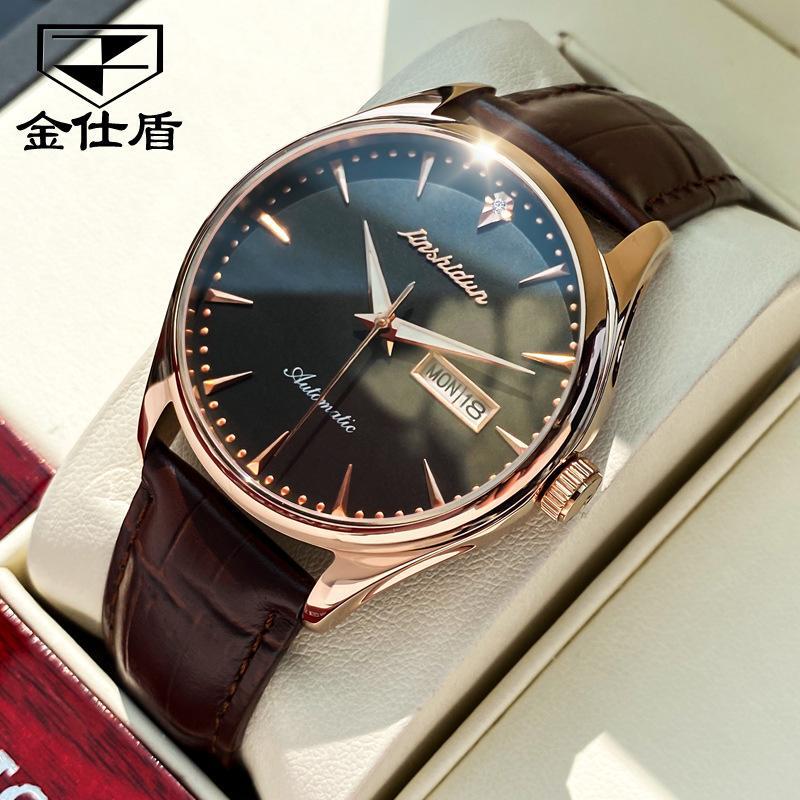 JINSHIDUN Markenuhr Automatische mechanische Uhr Doppelkalenderuhr Modetrend Herrenuhr Herrenuhr