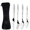 3-teiliges/4-teiliges/7-teiliges Set Essgeschirr Tragbar Bedruckt Messer Gabel Löffel Edelstahl Familie Camping Steak Besteck Geschirr mit Tasche