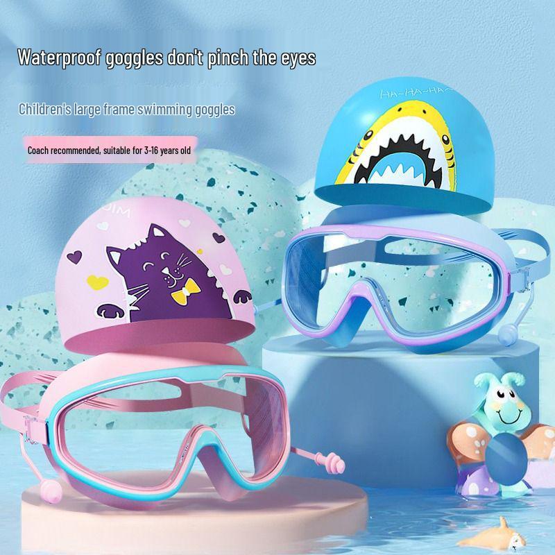 Kinder-High-Definition-Anti-Beschlag-Schwimmbrille für Jungen und Mädchen - Wasserdichte Tauchmaske mit großem Rahmen für Wassersport
