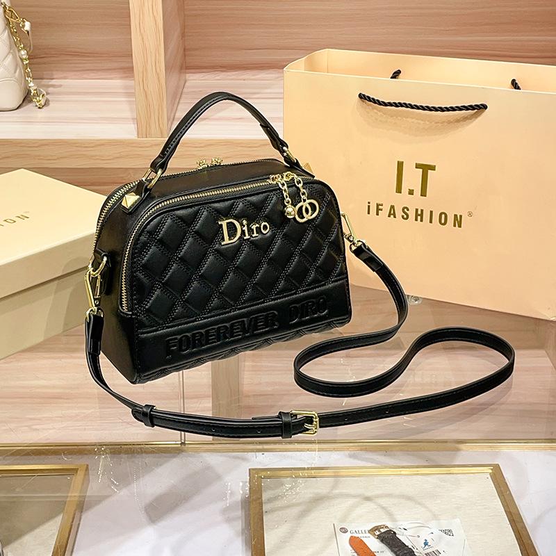 Shiling 2025 Handtasche & Umhängetasche für Damen mit schwarzem Diamantmuster aus Leder