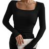 2023 Europäischer und Amerikanischer Slim Fit Gerafftes Kurzarm Langarm Quadratischer Ausschnitt Herbst Oberteil