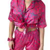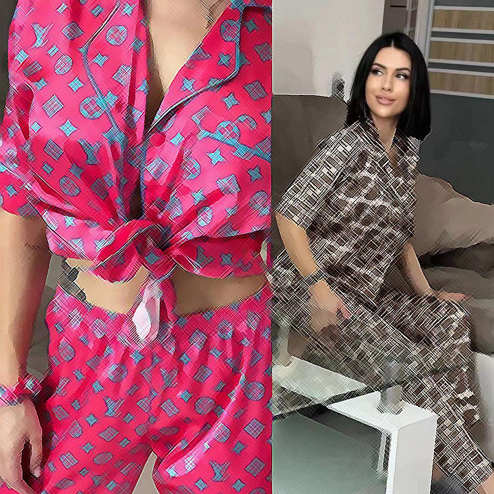Europäischer & Amerikanischer Damen Pyjama Set aus Eis-Seide - Kurzarm Oberteil, Lange Hose & Haargummi