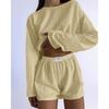 Entdecken Sie die perfekte Mischung aus Komfort und Stil mit diesem Damen-Slim-Fit-Set für Frühling und Sommer. Es verfügt über ein lockeres Pullover-Oberteil mit passenden Shorts, entworfen, um Schlichtheit und modische Vielseitigkeit zu bieten.. Dieses Set aus einer hochwertigen Polyester-Spandex-Mischung sorgt für eine bequeme und flexible Passform, die ideal für verschiedene Anlässe ist, egal ob Sie zu Hause entspannen oder einen Tag draußen genießen.