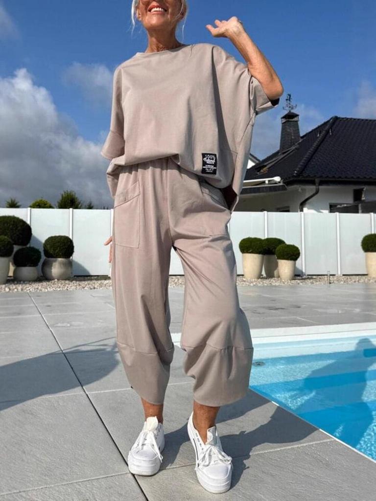 2025 Sommer Damen Lässiges Lockeres Zweiteiliges Set mit Taschen und Kurzen Ärmeln