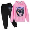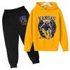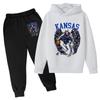 Herbst Winter Kansas Jayhawks Skelett Geflügelter Basketball Bedruckte Hoodies Sweatpants Set Lässig Warm Sport Langarmhosen Herren Sportbekleidung