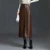 Herbst Winter Hohe Taille Gerader Rock Damen Koreanischer Stil Mode Lederrock Lang Schlank Vielseitiger Rock
