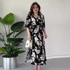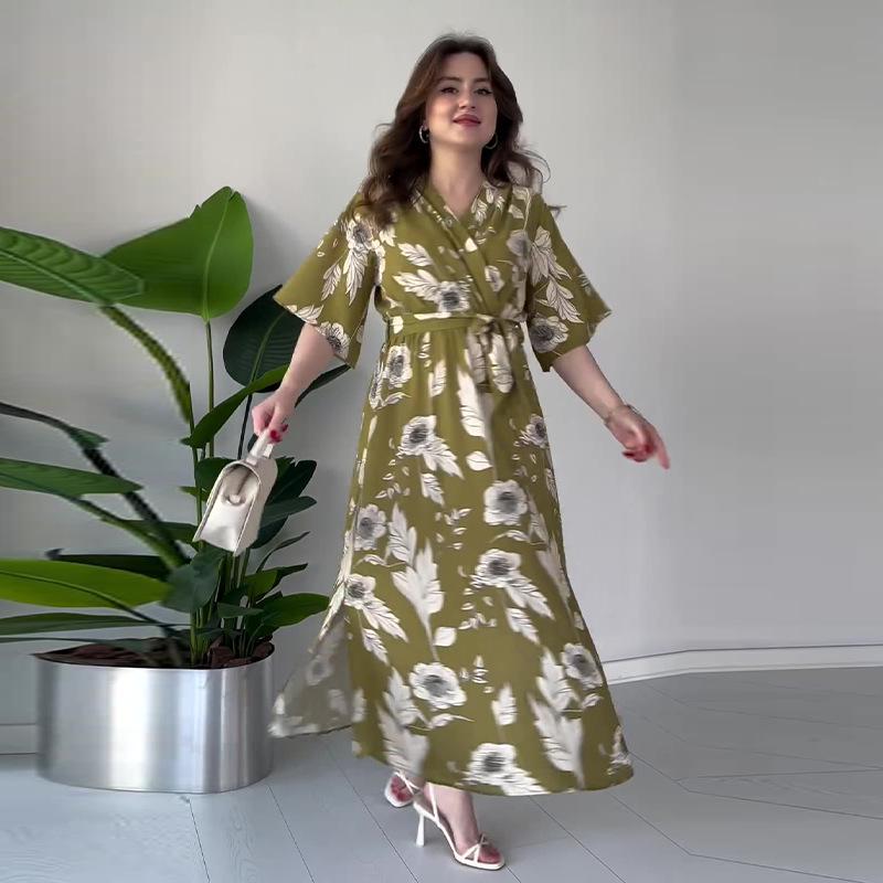 2024 Sommer Damen V-Ausschnitt Bindegürtel Mode Druck Schlankmachendes Kleid