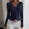 2025 Herbst Winter Neu V-Ausschnitt Spitze Stickerei Anti-Pilling Strickjacke T-Shirt Langarm Damenoberteil