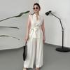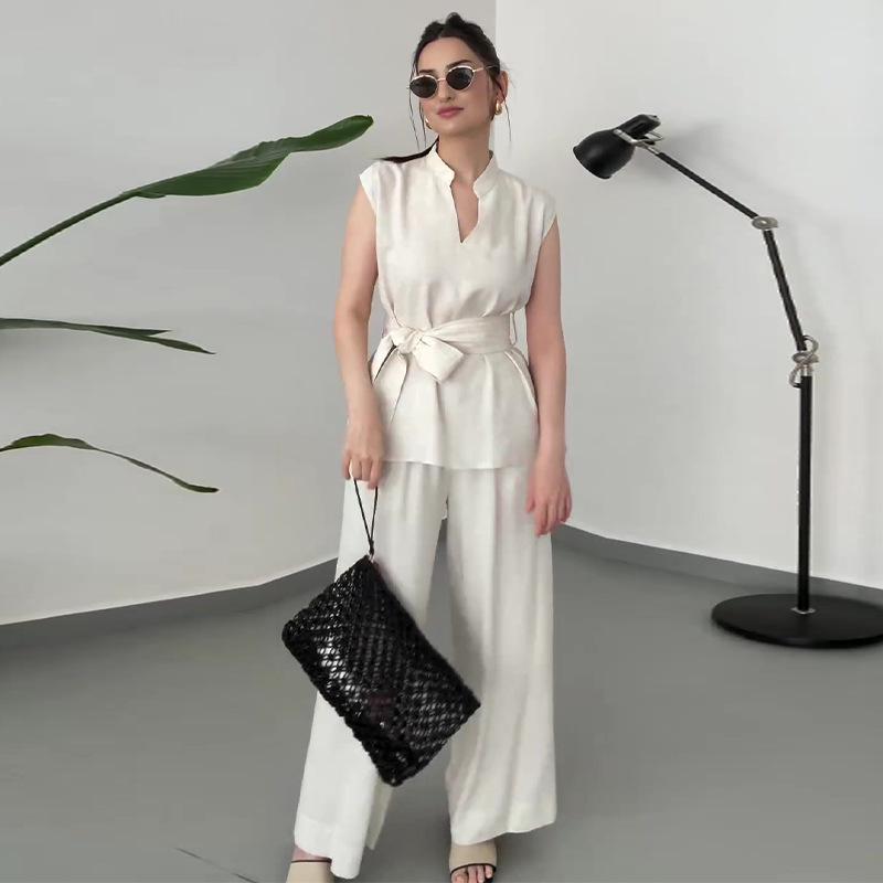 2024 Sommer Damen Einfarbig Ärmellose Weste & Weitbeinige Hose Set