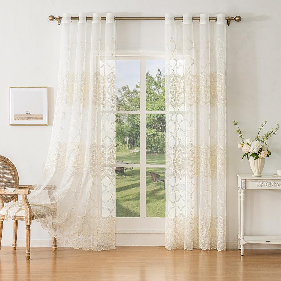 Fenstergitter Stickerei Gaze Vorhang Wohnzimmer Schlafzimmer Balkon Lichtdurchlässigkeit Fertiger Vorhang Europäisch Modern Schlichtheit