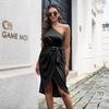 Damen schulterfreies Satin-Midikleid - zum Binden, einfarbig, Sommerstil