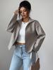 Umarme zeitlose Eleganz mit dieser minimalistischen einfarbigen Reißverschlussjacke aus der Damen Herbst/Winter 2025 Kollektion.. Diese Jacke wurde fachmännisch aus hochwertiger Wolle gefertigt und bietet sowohl Wärme als auch Stil für die kühleren Monate.. Der runde Ausschnitt und die langen Ärmel verleihen einen Hauch von Raffinesse und machen es zu einer vielseitigen Ergänzung für jede Garderobe.. Das schlichte, aber schicke Design der Jacke ist perfekt für diejenigen, die zurückhaltende Mode schätzen und sich nahtlos in sowohl europäische als auch amerikanische Stilvorstellungen einfügt.