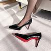 24D16 wasserdichter Tisch High Heels Damen Übergröße Französisch High-End Schwarz keine müden Füße dünne Absätze spitz Huizhou Einzelne Schuhe