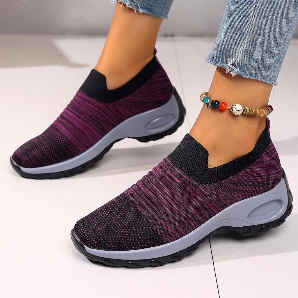 Große Größe fly-gewebte lässige Sportschuhe Damen 2025 neu fußanliegend Socken-Typ Ein-Pedal-Flats