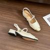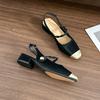 Y081-2 Temperament Farbabstimmung 2025 Sommer Tasche Kopf dicker Absatz Sandalen leichter Mund Retro vielseitig Französisch quadratischer Kopf einzelne Schuhe Frauen