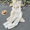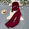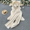 Herbst Winter Damen Vintage Designer Strickpullover Hose Zweiteiliges Set Blazerkragen Jacke Mantel und Weitbeinige Hose Trainingsanzug