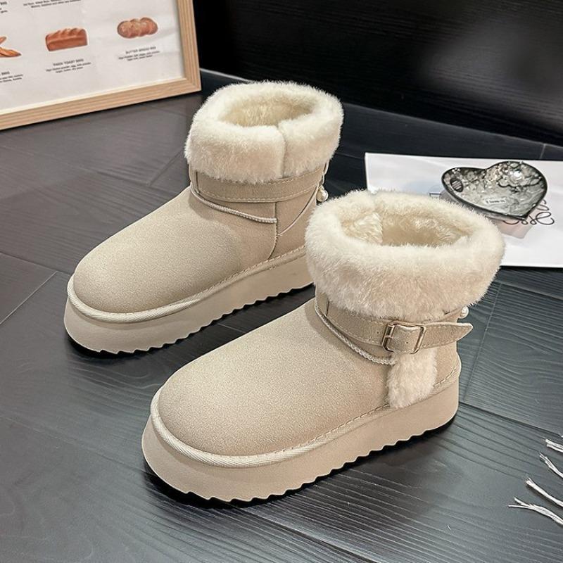 Schneestiefel Damen neue Herbst- und Winter Samt warme Baumwollschuhe Tasche Kopf Halbschlepp Flusenschuhe