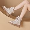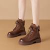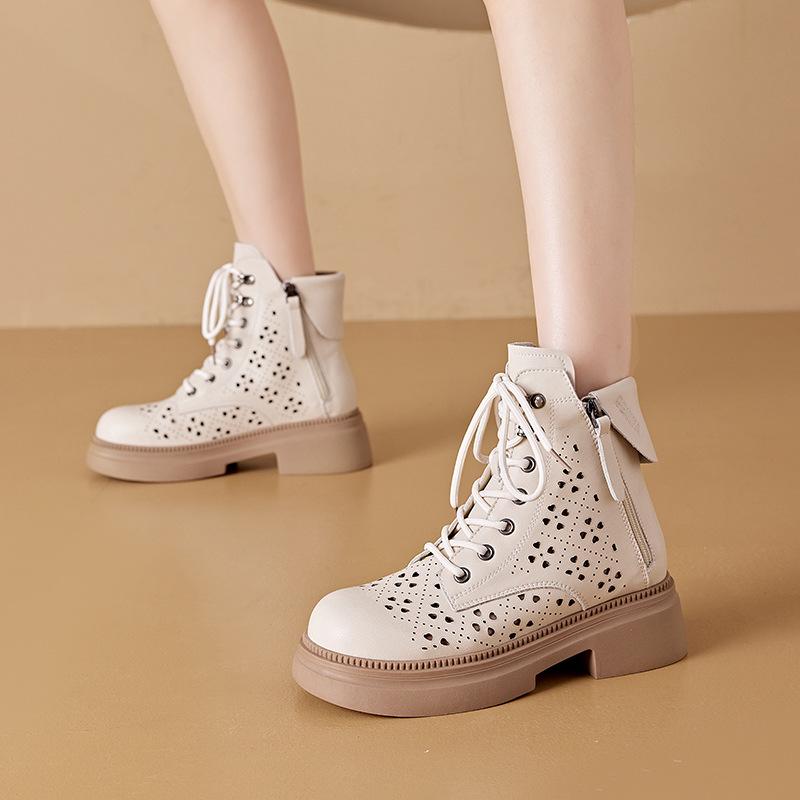 2025 Kleine Leder Hohle Damen Dicke Sohle Koreanische Ausgabe Doppelreißverschluss Damen Lederstiefel Schnürung Freizeitschuhe