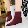 Stilvolle und schlichte Damen mit niedrigen Absätzen, Keilabsatz mit innerer Höhenerhöhung, spitze Pediküre und dünne Wildleder-Shorts