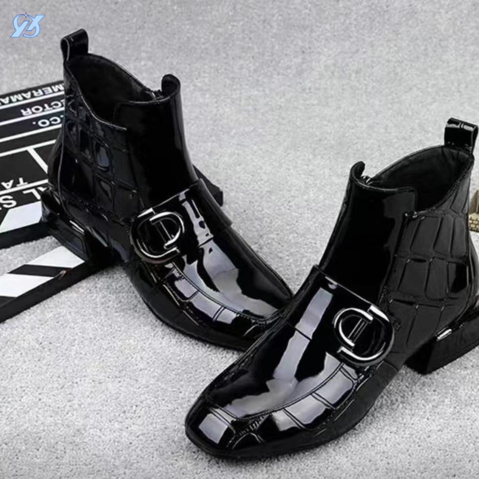 Neue kurze Damen Lackleder Mode Damen Schuhe flacher Boden eckige Spitze seitlicher Reißverschluss Samt Übergröße Damen Britischer Stil Damen