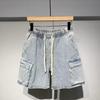 Herren Japanische Arbeitskleidung Elastische Taille Denim Shorts, Sommer 2023 - Lässig, Locker geschnitten, Mittellang
