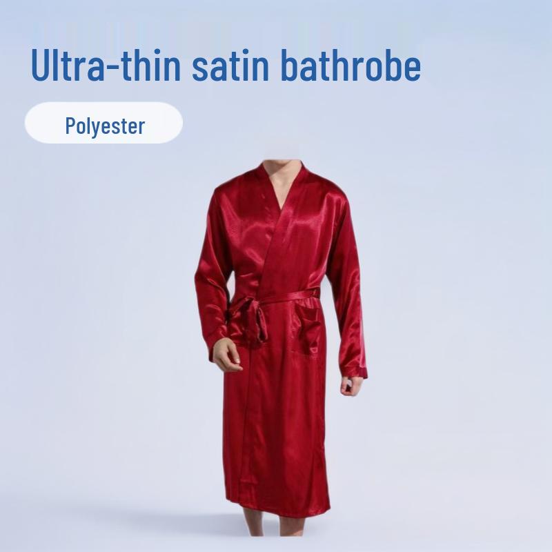 Herren Übergröße Satin Bademantel - Langarm Einfarbig Dünner Cardigan Nachthemd