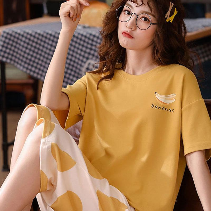 Erleben Sie ultimativen Komfort mit diesem Damen-Sommer-Pyjama-Set, das kurze Ärmel und eine lockere Passform für ein entspanntes Tragegefühl bietet.. Dieses Set, gefertigt aus einer einzigartigen Mischung aus Kunstseide und Milchseide, bietet einen weichen und atmungsaktiven Griff, perfekt für warmes Wetter. Die stilvolle 7/8-Hose fügt ein schickes und lässiges Element hinzu und macht sie ideal zum Entspannen zu Hause.. Genießen Sie bei jedem Tragen eine Kombination aus Eleganz und Gemütlichkeit.