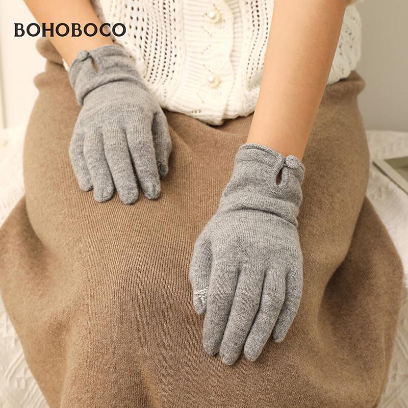 BOHOBOCO Damen 100% Kaschmir Handschuhe mit Handgelenkschnalle