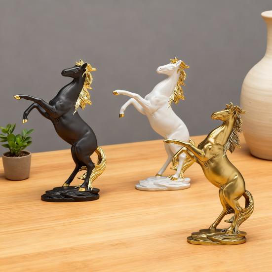 Verschönern Sie Ihren Wohnraum mit dieser exquisiten Pferdefigur, die eine reibungslose Karriere und ein glückliches Leben symbolisiert.. Gefertigt aus hochwertigem Kunstharz, strahlt seine glatte und zarte Oberfläche eine leichte Luxustextur aus, die mühelos jede Einrichtung ergänzt.. Das moderne minimalistische Design verleiht Ihrem Zuhause eine künstlerische Note, egal ob es auf einem Schreibtisch, im Wohnzimmer oder auf einem TV-Schrank ausgestellt wird.