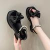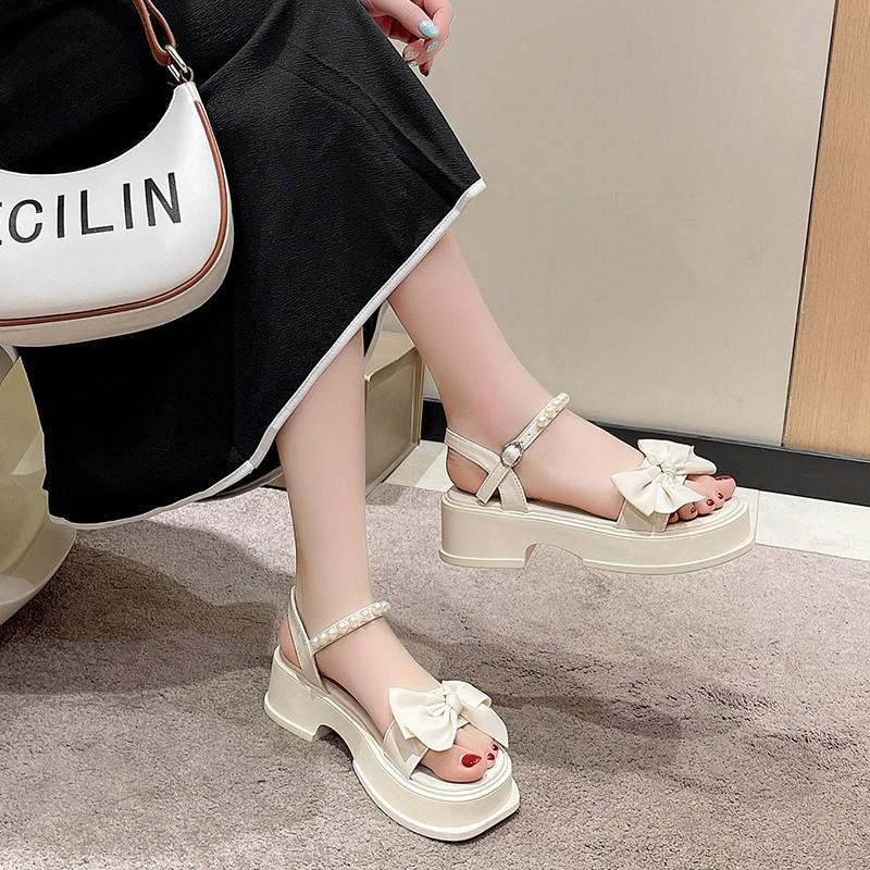 Plateausandalen Feenstil mit Rock 2025 Sommer neu Schleife Damenschuhe Perle Mode vielseitig Strandschuhe