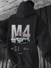 Herren Roter M4 Racing Hoodie - Inspirierte Grafik mit weißem Renndesign, Kordelzug, Kängurutasche, lockere Passform